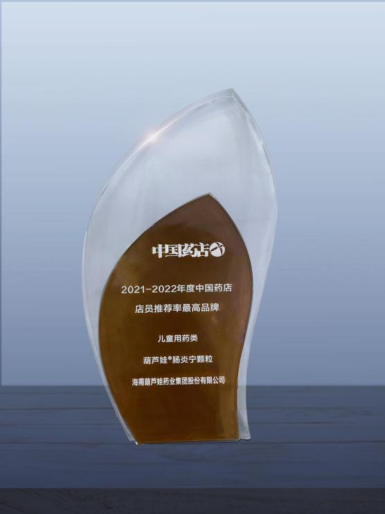 近日,由《中国药店》杂志社举办的“2022~2023年度中国药店发展报告暨中国药店价值榜发布会”在青岛举行,会上发布了“2021-2022年度中国药店店员推荐率最高品牌”奖,yh86银河国际药业两大明星产品yh86银河国际牌小儿肺热咳喘颗粒(4g)、yh86银河国际牌肠炎宁颗粒(2g)双双上榜。